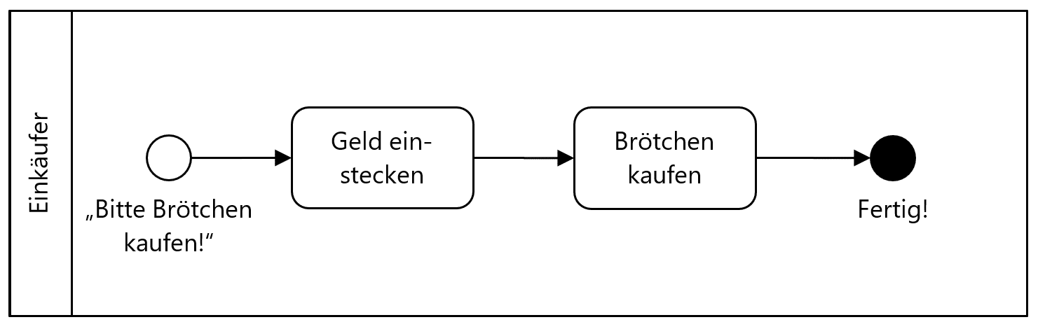 Die einzelnen Aktivitäten (hier: „Geld einstecken“, „Brötchen kaufen“) werden natürlich noch genauer beschrieben durch